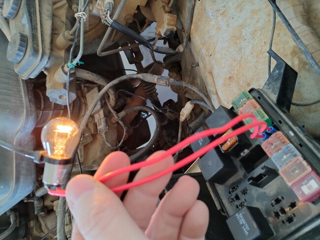 I did the light bulb test and got the light to go off as said above and that was the only way for me to get it to turn off or dim with the other plug unplugged. I tried wiggling wires, unplugged coil messing with fuel injector wires and well I can't find the o2 wires. I hooked up a wire chaser beeper to the fuse terminals and have beeping sound over at the PCM plug.