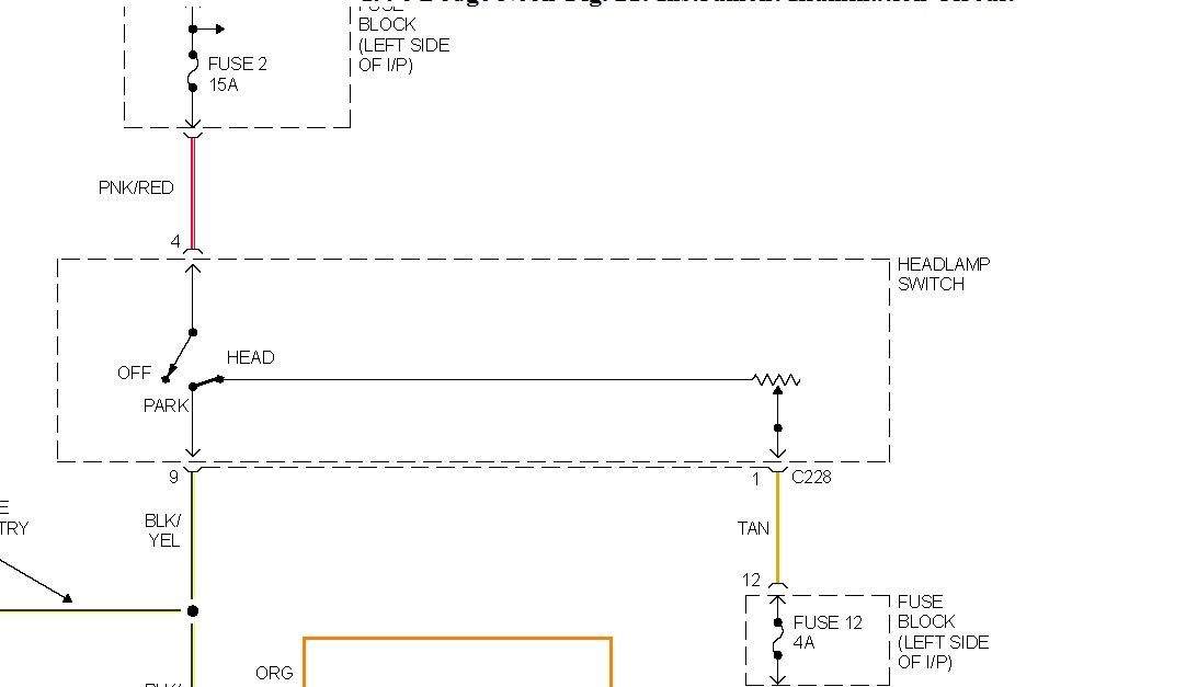 The higher fusae is hot all the time, the lower fuse goes hot with the headlamp switch turned on. With dash lites, if dimmer turned all the way down, no dash lites.