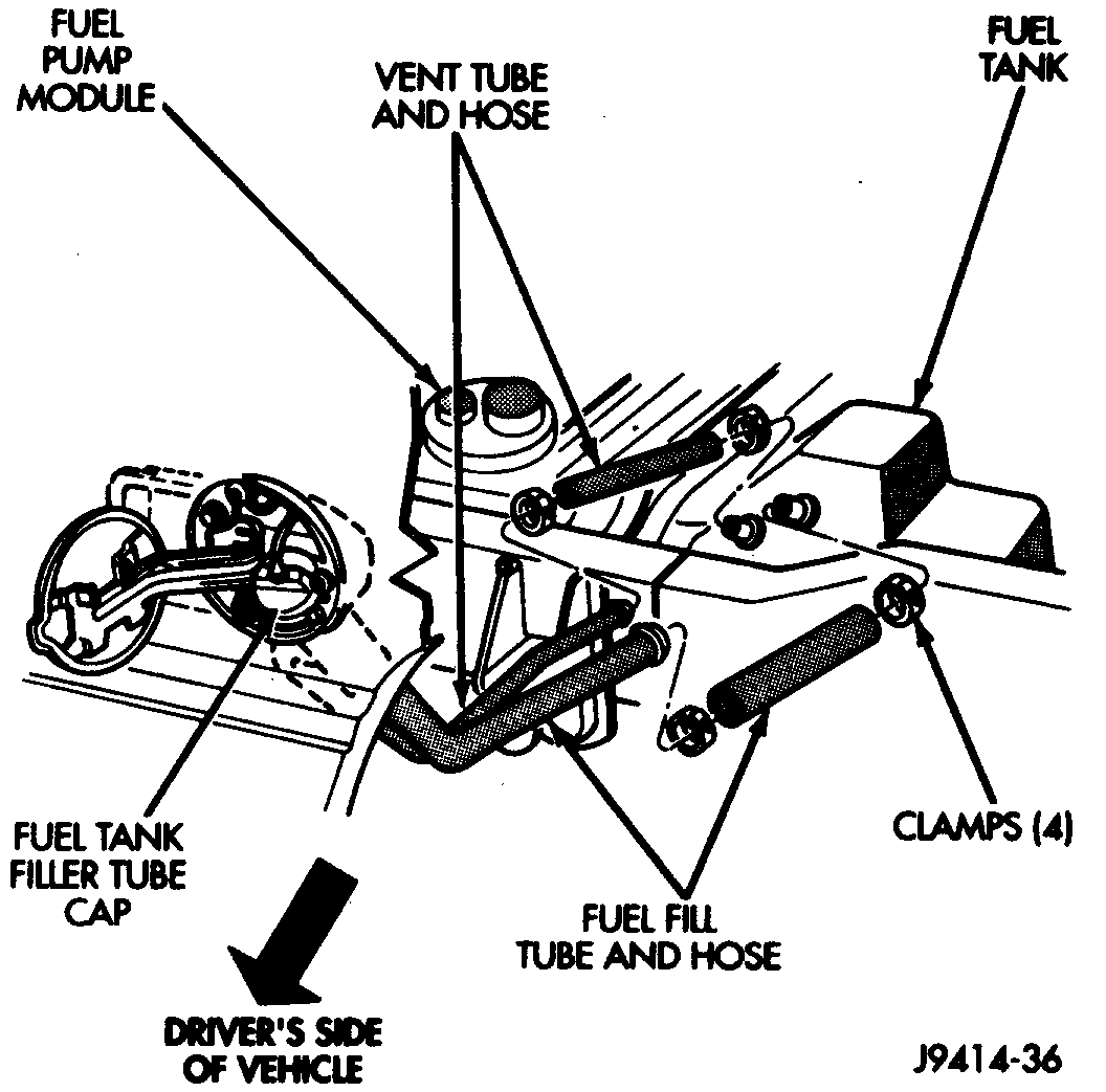 To replace the fuel pump on this vehicle, you must remove the fuel tank. I will first provide the directions for draining, removing and replacing the fuel tank, and then I will provide the directions for replacing the pump. The attached pics will correlate with the directions.