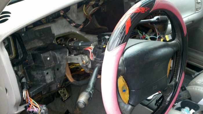 1. Disconnect negative battery cable. Ensure gear selector is in Park (A/T models). On Pickup,  remove steering wheel andÂ