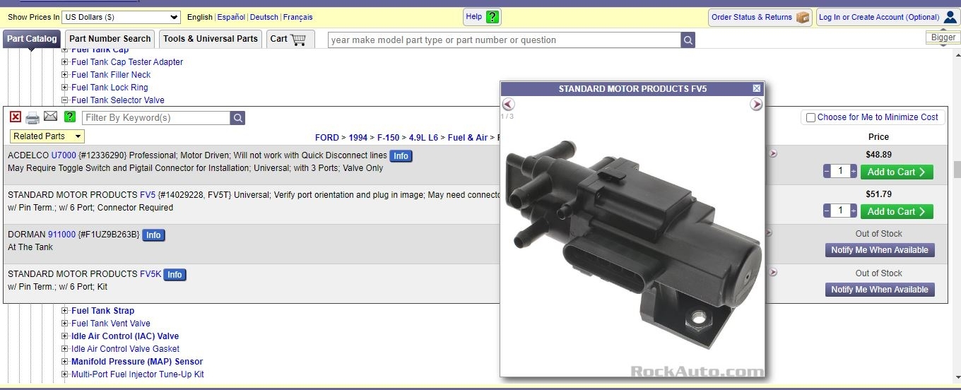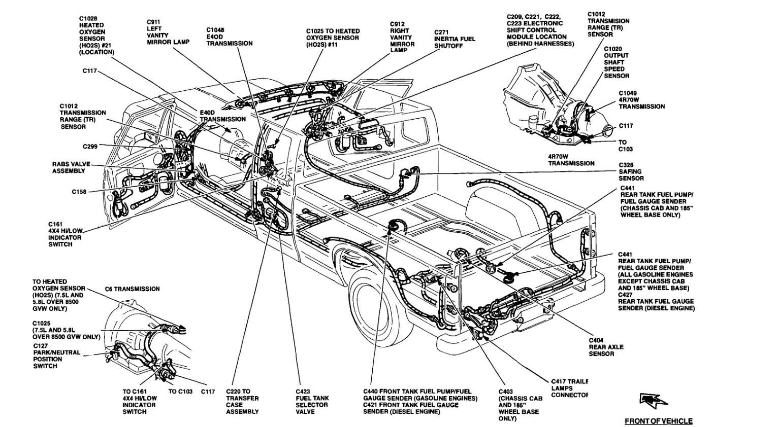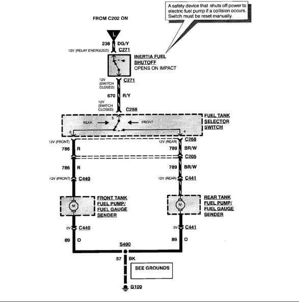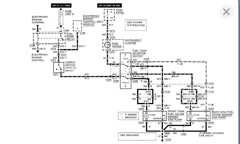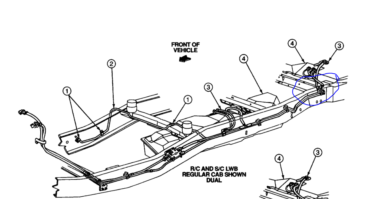 It also has the dual tanks. I have seen so many conflicting statements about the components of the fuel system on this truck since I am experiencing a problem where when I use the front fuel tank (rear fuel pump is not working), fuel is running back into the rear tank and causing it to overflow. This truck has a fuel pump in each tank and another along the rail if I read everything correctly. However, what I'm unsure of is whether or not this truck has a fuel tank selector valve, or just the switch on the dash and the 3 pumps. Also, whether or not this issue would be solved by replacing the rear pump, which I believe has the check valves inside them.