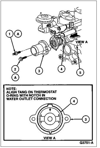 Remove water thermostat by rotating counterclockwise in water outlet connection until water thermostat becomes free.