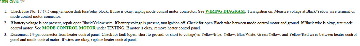 Fuse 17 is good, mode control motor works, wires not pinched getting power to everything. Fresh air and recirculating vents are not stuck. In the blower motor compartment with fresh air vent open, blower motor pushes air, a fair amount of air, it is directed to next compartment(a c compartment) there is nowhere else to go this is factory designed to flow to this compartment with no actuators or vents to control. Which is fine, air floes steadily to a c compartment but wont flow through to heater core compartment(this is where the actuators and flow control are located-meaning floor, defrost you know all the settings) somehow the AIR FLOW must go from the blower compartment to the a c compartment to the heater core compartment. But it wont. Only thing blocking the air is a c evaporator. I cant move it, there is no restriction, air should flow right through it and pass to the heater core but it wont. At this point I am open to any and all thoughts and ideas.