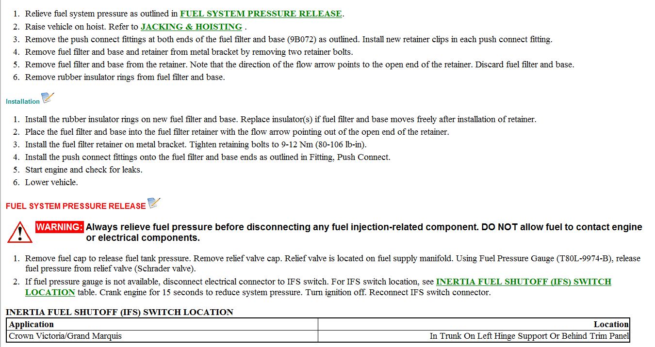 Some models have an inline fuel filter. Usually it is either behind the fuel tank or in the engine bay. You should check the Inertai switch too as they can cause issues by failing intermitantly. I have included Fuel Pressure specifications, Fuel Filter Removal and Instal, Fuel Pressure release and Inertia Switch location.