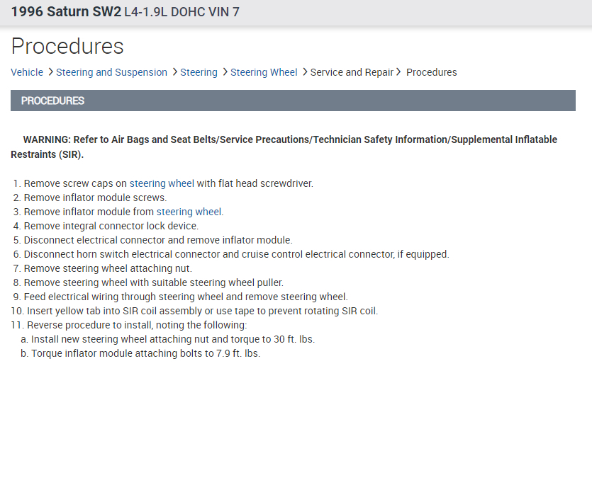 Take extra precaution when working around the airbag. Be sure to disconnect the battery before getting started. And always point the airbag inflator side away from you.