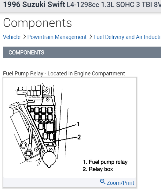 My daughter's Suzuki swift is not getting fuel to the carby. An auto sparky says the fuel pump is fine, (he did some sort of bridge to test them) but when turning the key to ON or START position the fuel pump does not get any power. I have had the engine running by dribbling fuel straight down the carby, but otherwise it will not start or run even once started.