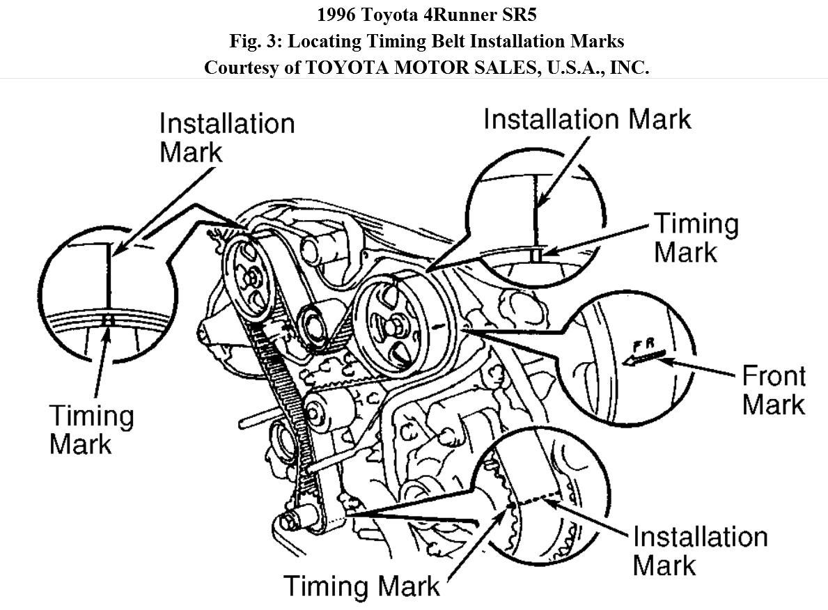 2. Apply engine oil to thrust surfaces and journals of camshafts. Install exhaust camshaft in cylinder head. Rotate exhaust camshaft so timing marks (2 dots) on right cylinder head or 1 dot on left cylinder head are positioned at 90-degree angle to cylinder head.