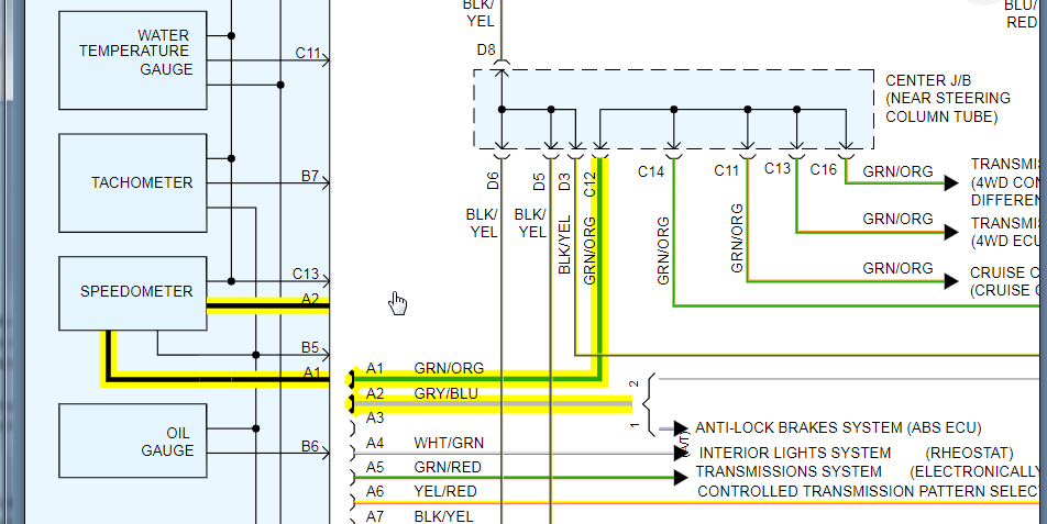 It's surprising to find a speedometer cable on a vehicle this new. It would also be surprising to find a speedometer cable-driven cruise control servo, but just so we don't overlook something stupid, check if the cable goes into the cruise control servo. I'm 99 percent sure it doesn't, but if it does, it will have flyweights that come out due to centrifugal force, and those can come apart and catch on the housing. That will cause the lower cable to lock up at higher road speeds, and will twist that cable off.