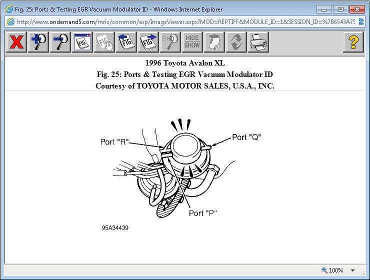 See Fig. 26. Block ports "P" and "R" on EGR vacuum modulator. See Fig. 25.