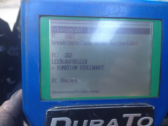 The second FC ("leerlaufregler - inactiv controler") indicates that the second idle stab system isn't working, which is why you have problems when the engine is cold. The parasitic losses are higher, and the alternator is loading the engine recharging the battery after the start, and the digital system can't cope.
