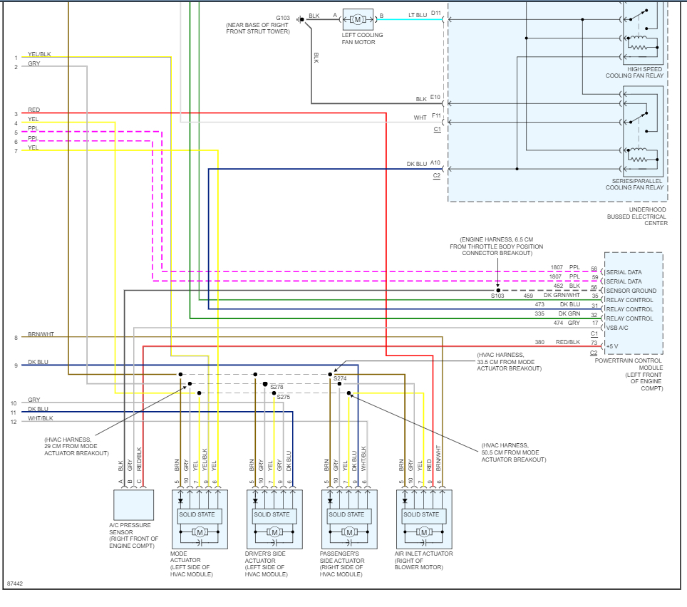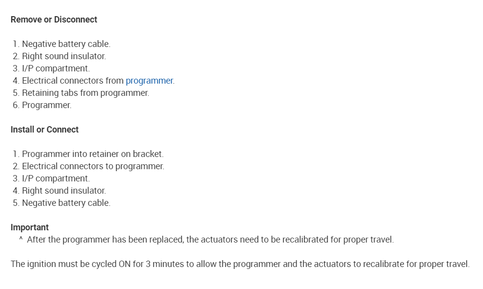 I purchased a brand-new known working mode door actuator and after installing I removed the HVAC fuse to reset the system, when I started the car, the actuator moved all the way to the far-right position which is defrost and never moved from that spot again. I have also since then replaced the climate control head unit with the same result. I have also checked that the vents can be moved by hand without an actuator installed and they work fine. The blend door actuator seems to be working fine also.