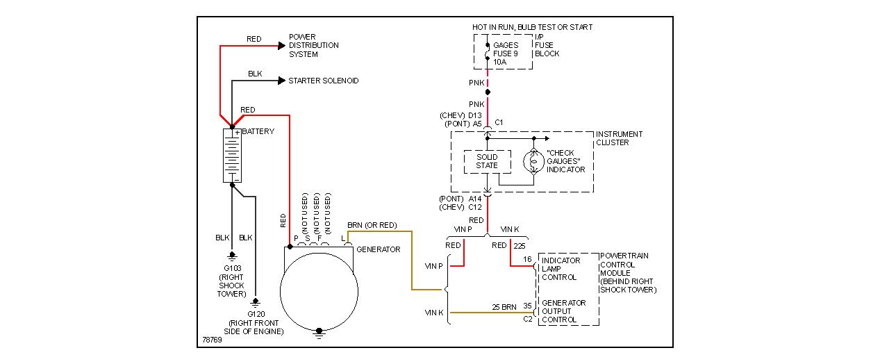 Two of the other terminals are not used. Terminal "P" is only used on diesel engine for the tach signal. If there's no letters molded onto the plug or cast onto the housing, when you connect the car's brown wire to the correct terminal, the battery light should turn on when the ignition switch is turned on. You can do the same thing with a test light. Connect the ground clip to the battery's positive terminal, then touch the probe to the wires in the plug. When you touch the right terminal, the test light will light up indicating it's trying to turn on the system. At that point the generator will start working when the engine is running, and the test light will be turned off.