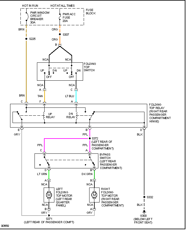 terminal "A" (Tan wire). If top does not operate,  go to next step. If top operates,  replace convertible top switch.