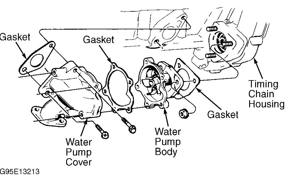 SPROCKETS & TENSIONERÂ. Remove bolts securing water pump cover to cylinder block. Remove water pump to timing chain housing nuts.
