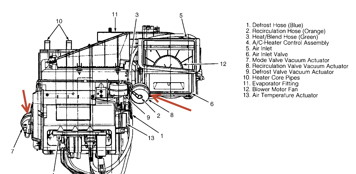 See if both heater hoses hot when engine warm. If they are check your actuators in heater. Check for a vacuum leak starting at engine. Check to see if both vacuum motors are operating the one on lh side is for heat. Pic attached.