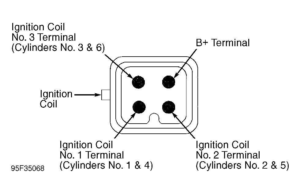 As you can see, there are 4 pins. One is the B+ and the others are for individual cylinders. First make sure there and no damaged pins in the connector or corrosion. If that checks good, using an ohm meter, check for primary resistance between the B+ terminal and each of the others (one at a time). If primary resistance is more than 2 ohms, the coil is bad.