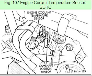 NOTE: The engine coolant temperature sensor threads into the rear of the cylinder head (Fig. 107).