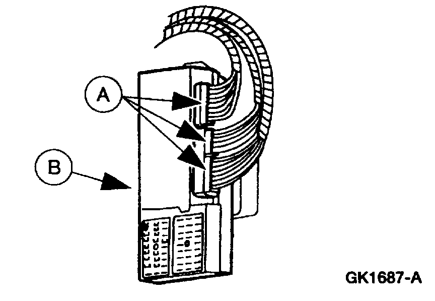 6. Disconnect the three (A) GEM electrical connectors from the (B) GEM.