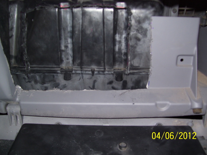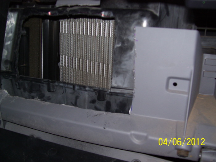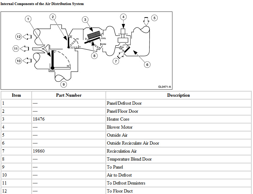 You'll need to replace the temperature blend door actuator, normally you have to pull the panel out to reach it but you might be able to see it if you pull a bunch of stuff from front of panel. Not a very easy job... No there aren't very many good pics of this, this pic was taken from the ford site and was about the best one. The motor will be on the outside but like I said normally the panel has to come out, not a very easy job.