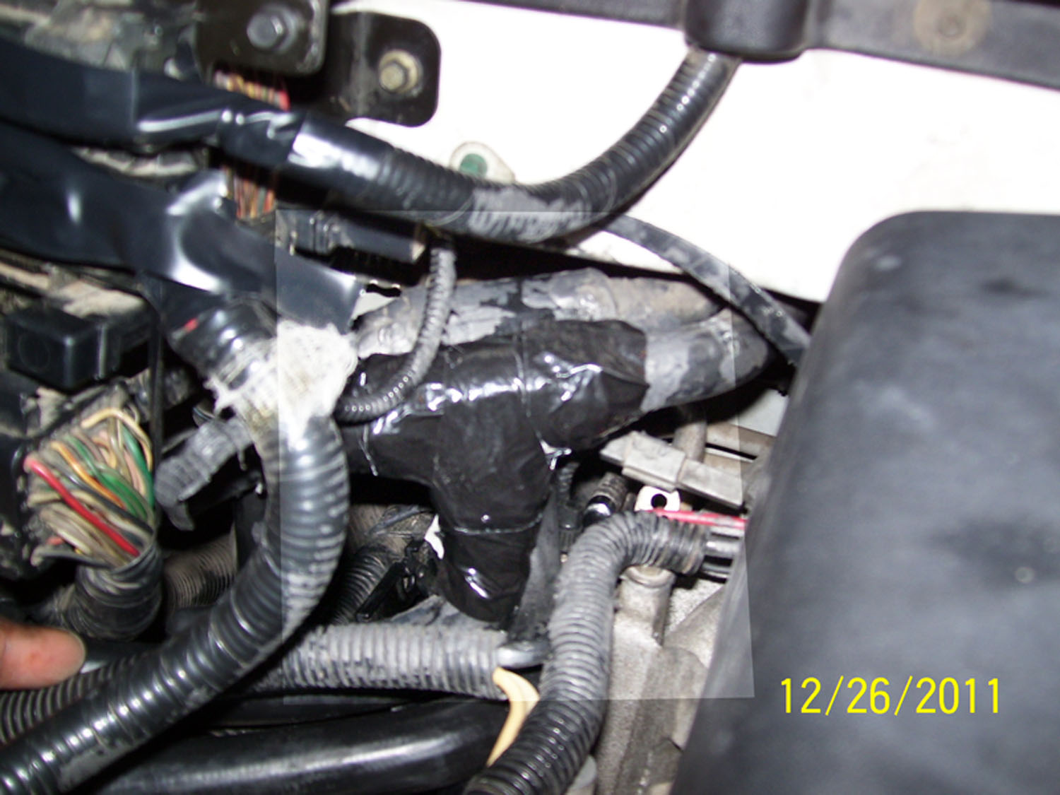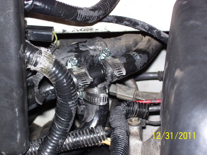 Holiday Greetings all. This is my first post. I have a ford Expedition 2wd 5.4Liter Triton. I have a leaky hose that appear to be coolant that is just above coil #3 and #4 on passenger side. What would be proper procedure to replace it? I have used gasket maker silcone pase, which appeared to slow it down. Also some special magic tape at autozone. Now, I have found a part at "Rockauto" that appears to be what I need.