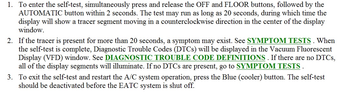 The self test will help you if you have an Auto temp control system but not if yours is manual.