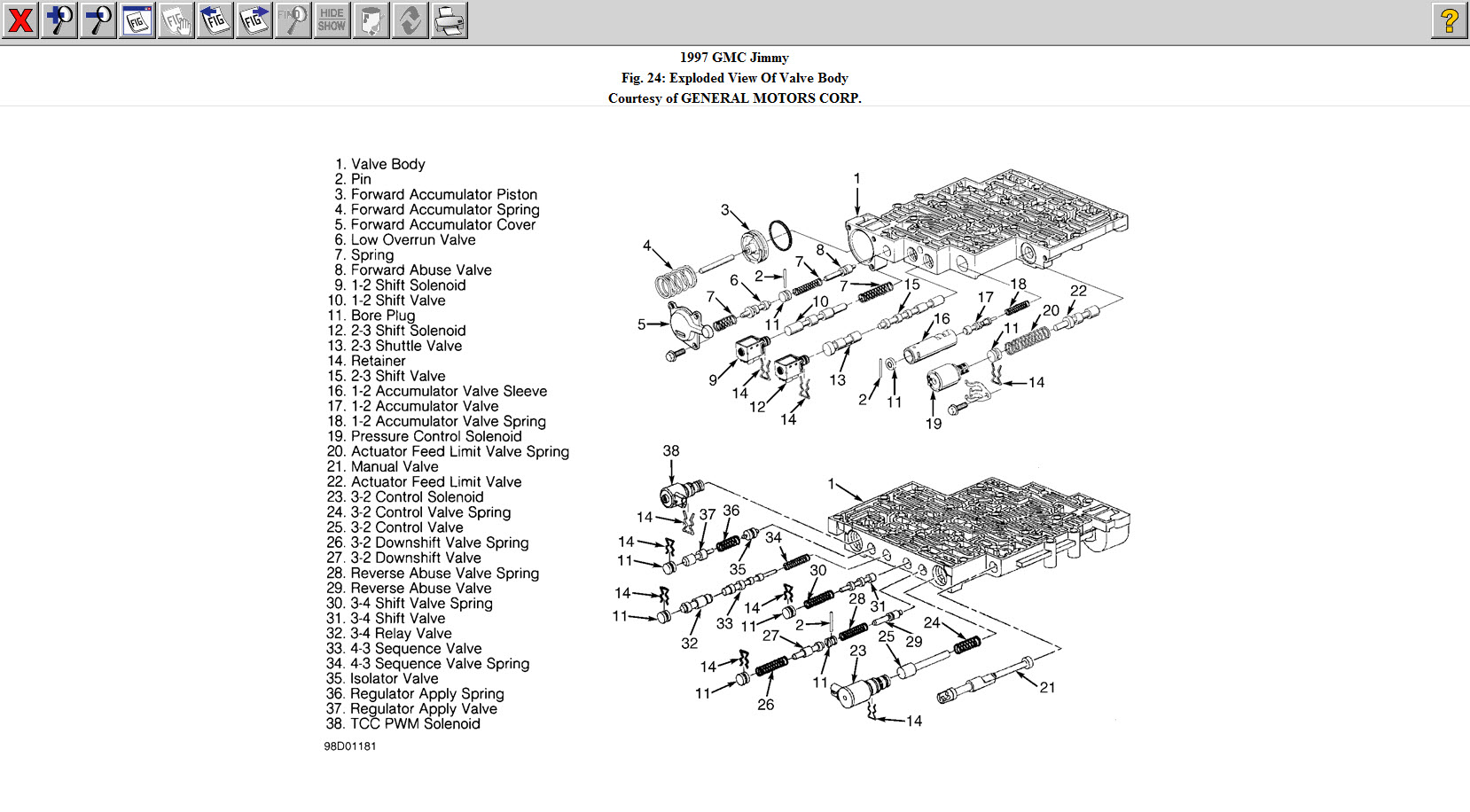If you really think this is the problem then here is the valve body diagram. 2-3 solenoid is Number 12 on the chart as explained. But keep in mind that there have been ignition switch problems that have caused the same problem. And buying a solenooid and installing it may not fix the problem, especially if somethingelse is wrong in the trans. There is a TSB on the ignition switch for your model truck. If you replace it you will have to go through the security relearn process.