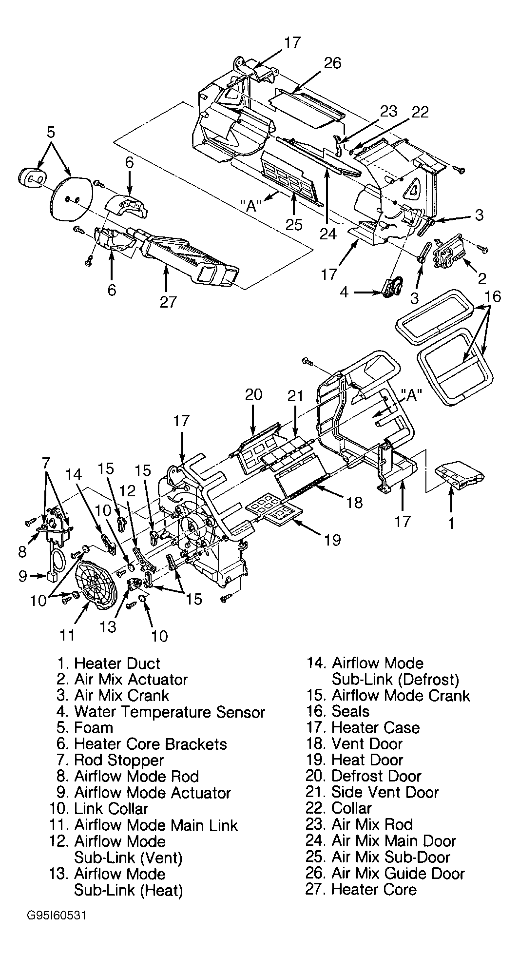 Where is the heater blend / door actuator located on 1997 mazda millenia?