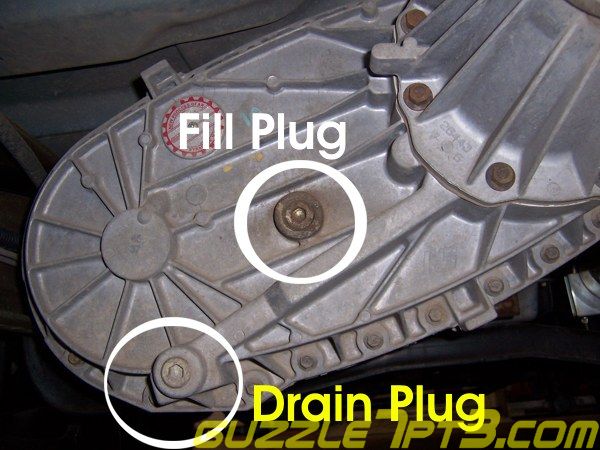 Under the vehicle, facing the rear of the vehicle, you will see two bolts that are the same. One is a drain (on the bottom) and one is a fill (about 2/3rds of the way up. The top one is where you fill it from. See pic attached.