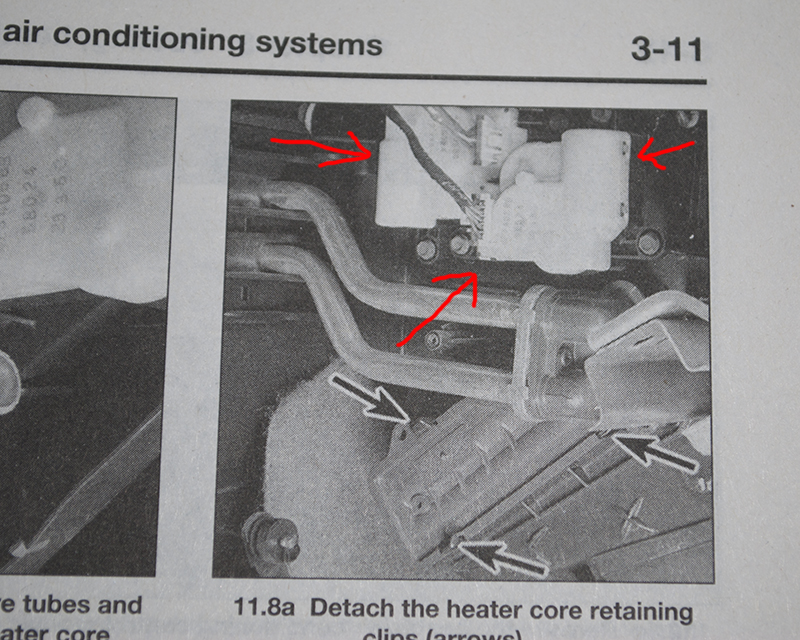 Heater is not working but air is blowing fine. I am trying to get some heat because it is about to get pretty nippy here soon. I went looking under the dash with a Haynes Manual and I now see something missing, but don't know what it is. This is above the gas pedal and right above the heater core lines at the center console. The White piece in the photo is not there. What is it? Maybe something that controls the blend door?