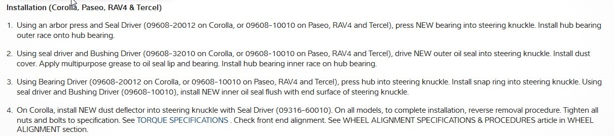 Your comment about the bearing "falling into place" by tightening the axle nut is pure nonsense, and proves you don't know what you're talking about. The axle nut / outer CV joint holds the bearing together. Nothing about it pulls the bearing into the spindle, even with the easily-replaced bolt-on type of bearing. If you remove the three of four mounting bolts, those are what holds the bearing to the spindle, not the axle nut. With those mounting bolts removed, you can slide the bearing out and bring the half shaft with it. Some outer CV joints are even small enough that you can completely remove the shaft from the vehicle, as though there is any value in doing so.