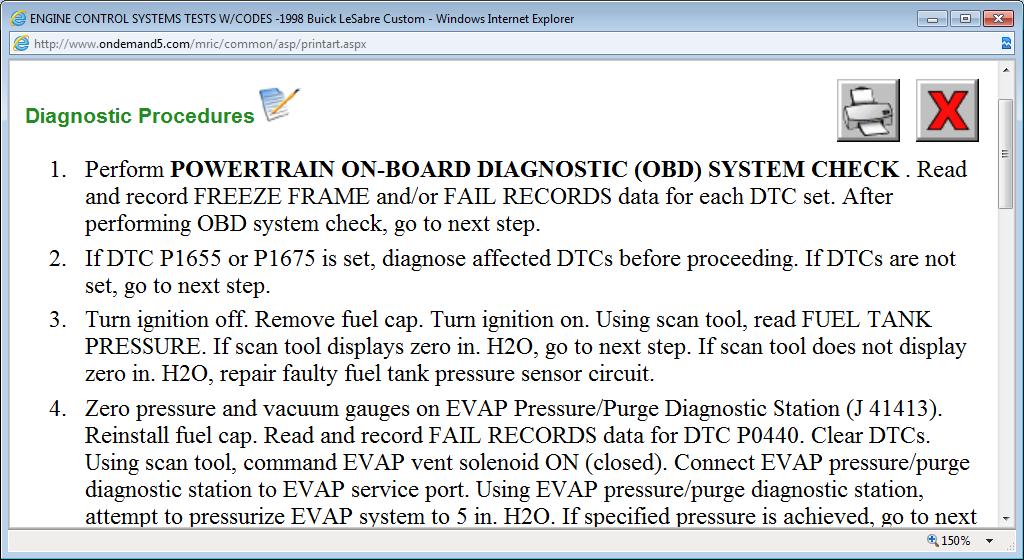 I posted the trouble tree for your code P0440 it means the computer detects a leak in the evap system. Which controls the fuel vapors it could be something as simple as a gas cap.I would make sure its tight and also inspect the seal on the gas cap for cracking etc. Its not just a you have this code replace this it has to be diagnosed. As you can see in the first steps of the trouble tree it has you use a scan tool and look at the readings. If you have a actual leak somewhere your going to have to use a smoke machine to force smoke into the system. Unless you get lucky and find a broken cracked or hose off. The smoke machines are very expensive I saw a guy on you tumbe make one with a fish pump halloween smoke machine some tubing and a cardboard box.I would have used a 5 gallon bucket with lid instead of the box.