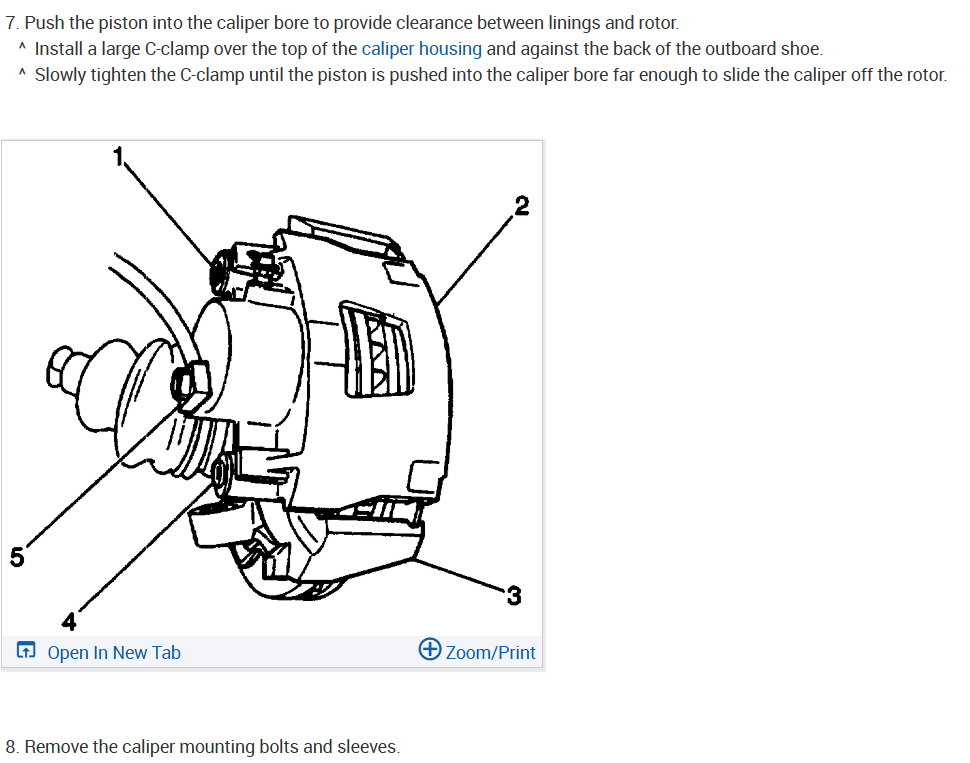 Second, the severely damaged rotor (see photo) cannot be removed without removing the caliper assembly. Although I have searched as carefully as possible with my fingers in the dim light (and despite using a flashlight) I cannot find the two bolts which hold the caliper to its frame. If you need another photo, I can repost within 24 hours of reading your message.