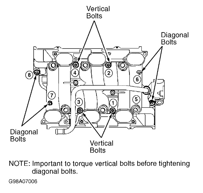 I have a 1998 chevy lumina and I am replacing the intake manifold gasket due to leakage. I no longer have manuals for the car. I need to know what are the torque specificatons and bolt patterns are for the intake manifold on a 1998 chevy lumina? Please help