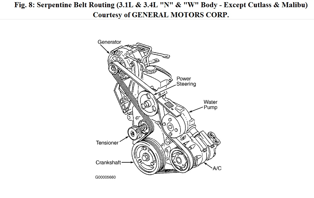 The info I looked at was for 3.1 and 3.4L engine. You use a racket or breaker, proper size drive, in the tensioner pulley cut-out. Pull to release tension on belt. Note the diagram.