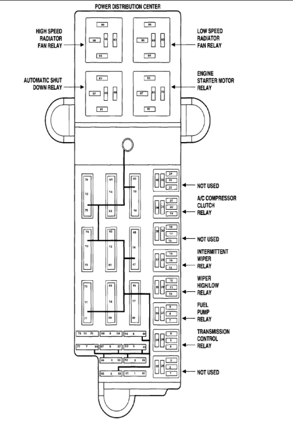 Looks like you are looking at fuse 19 and 9 in the PDC. I am attaching the info below for this. However, you also have relays so here are a couple guides that will help with testing the fuses and relays: