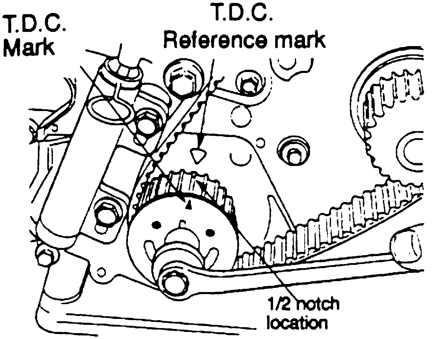 2. Using a suitable wrench, move crankshaft to 1/2 notch before TDC.