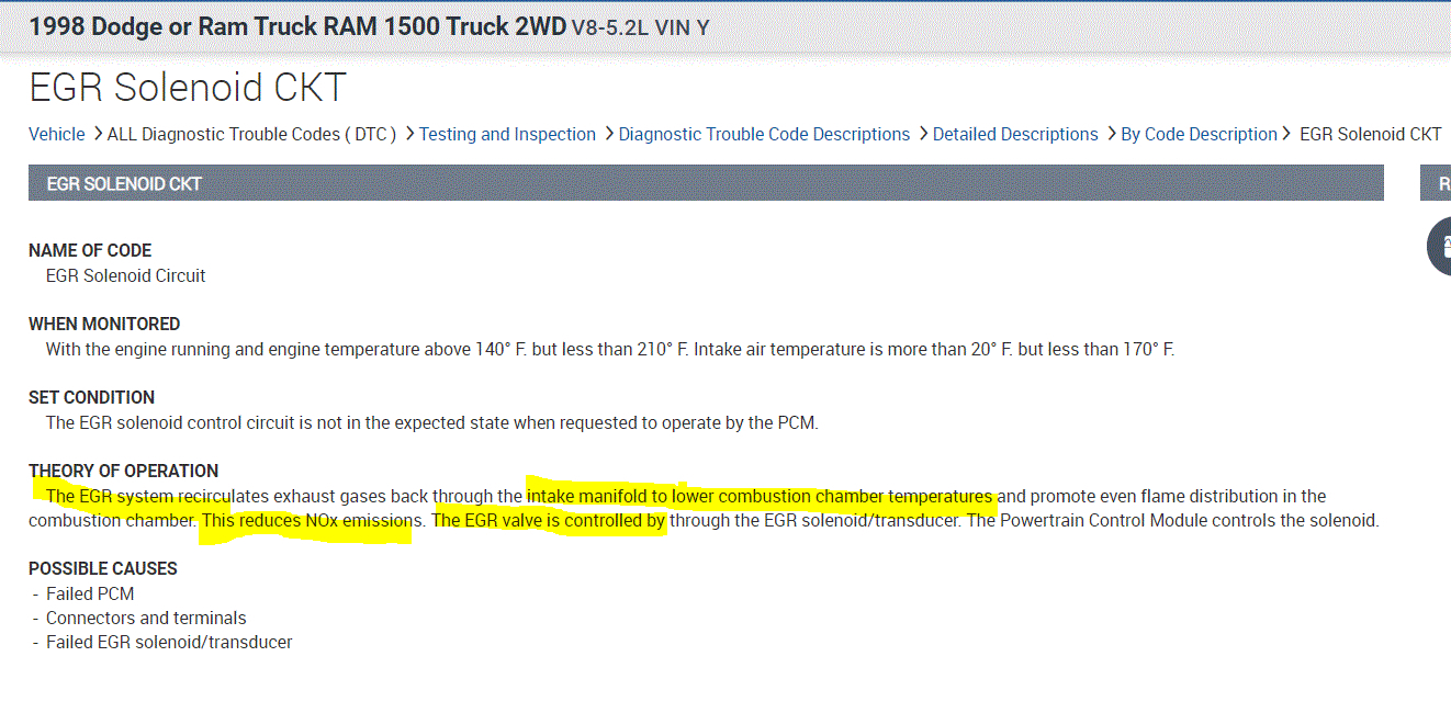 I have a 98 Dodge ram 1500 5.2L 318 with 153,000 miles. I have failed emissions testing three times. Did tune-up, replacing plugs, wires, rotor, and distributor cap. Ran fuel system cleaners. The third test showed significant improvement for HC, and CO, both passed. However my truck is failing the NOx test. I took it into a shop to have it diagnosed, the technician said everything checked out good, including the O2 sensors. He told me for $250.00 he would do a chemical treament to clean valves and injectors, and it would take him about four hours to do. He believes this would solve the NOx problem. Also I was told my truck does not have an EGR valve. Any suggestion on how to lower the NOx emissions without replacing the catalytic converter (which was replaced with an after market cat about 12,000 miles ago)?