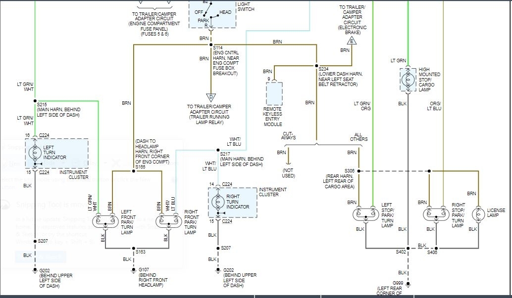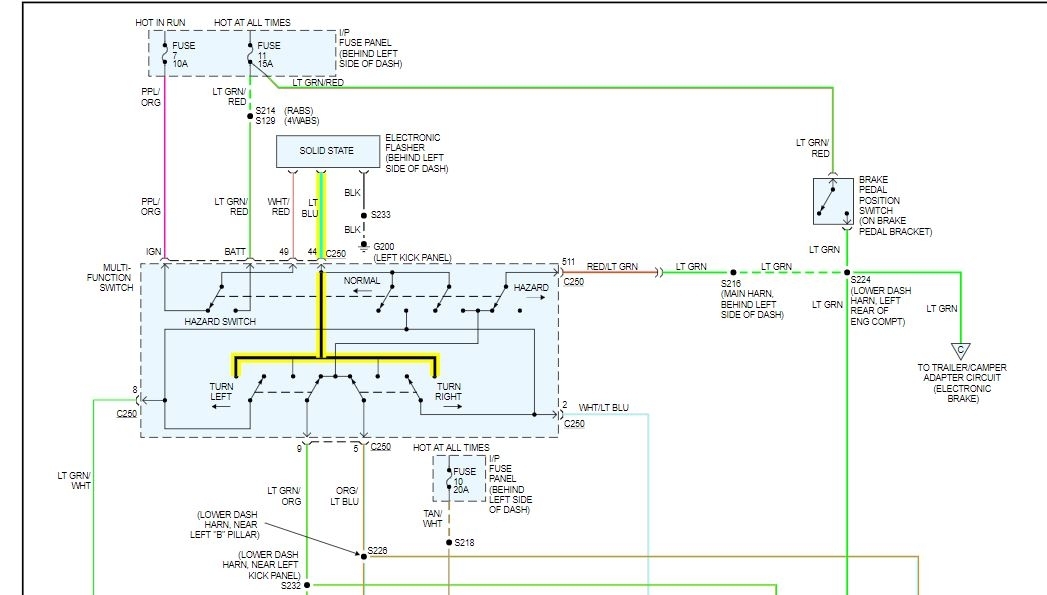 Turn signals all work. Right turn light indicator on dash also does not light with 4 way hazard lights, but does for turn signal. Would like to see wiring diagram, or am open to suggestions for troubleshooting. Vehicle is a Class C motor home on a Ford E 350 chassis, chassis year is 1998, camper is a 1999.