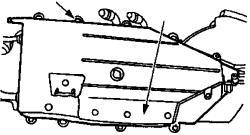 Remove the ten evaporator/heater core access cover retaining bolts and remove the evaporator/heater core access cover.