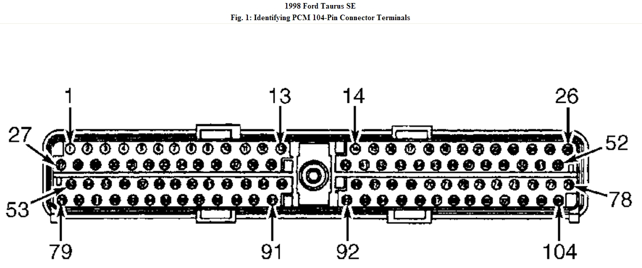 Disconnect PCM 104-pin connector. Inspect connector for loose, damaged or corroded terminals. Repair as necessary. Connect Breakout Box (014-00950), leaving PCM disconnected. Measure voltage between test pin No. 42 and test pin No. 51 or 103 (PWR GND) at breakout box. If voltage is less than one volt, go to next step. If voltage is one volt or more, repair short circuit.