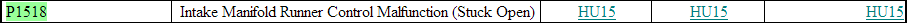 DTCs P1516 and P1517 indicate control circuit failure. DTCs P1518 indicates IMRC stuck open. DTC P1519 indicates IMRC stuck closed. Possible causes are: