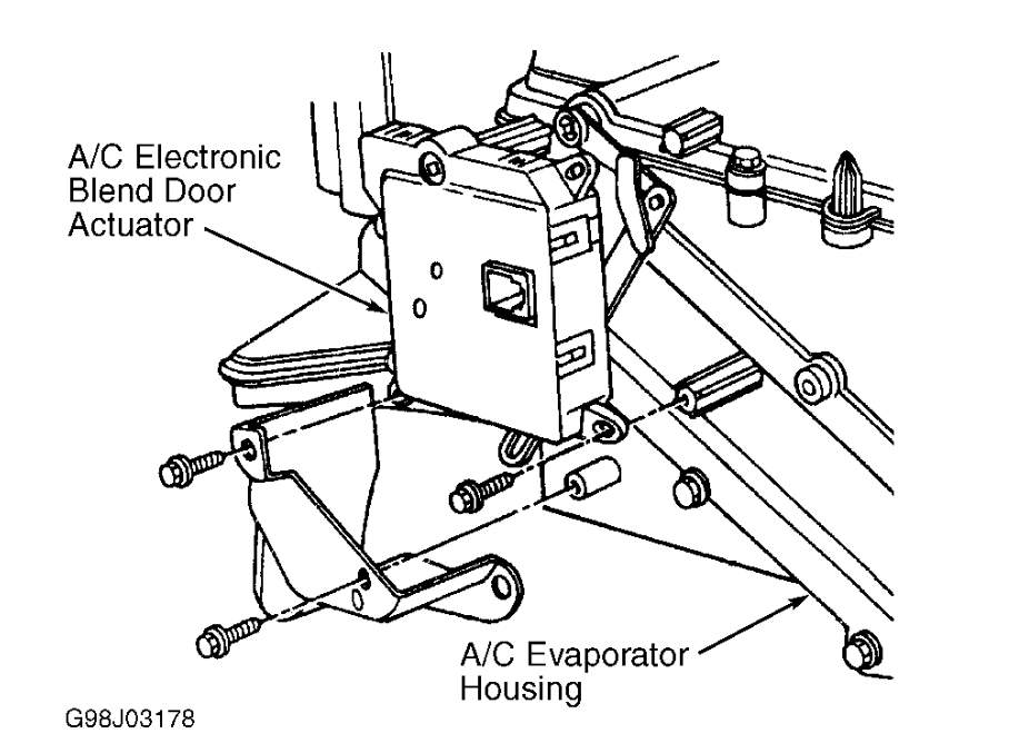 1. Disconnect negative battery cable. Remove right lower console trim panel from instrument panel. If equipped with center console,  remove right,  front side panel from console. Disconnect A/C electronic blend door HEATER/EVAPORATORÂ
