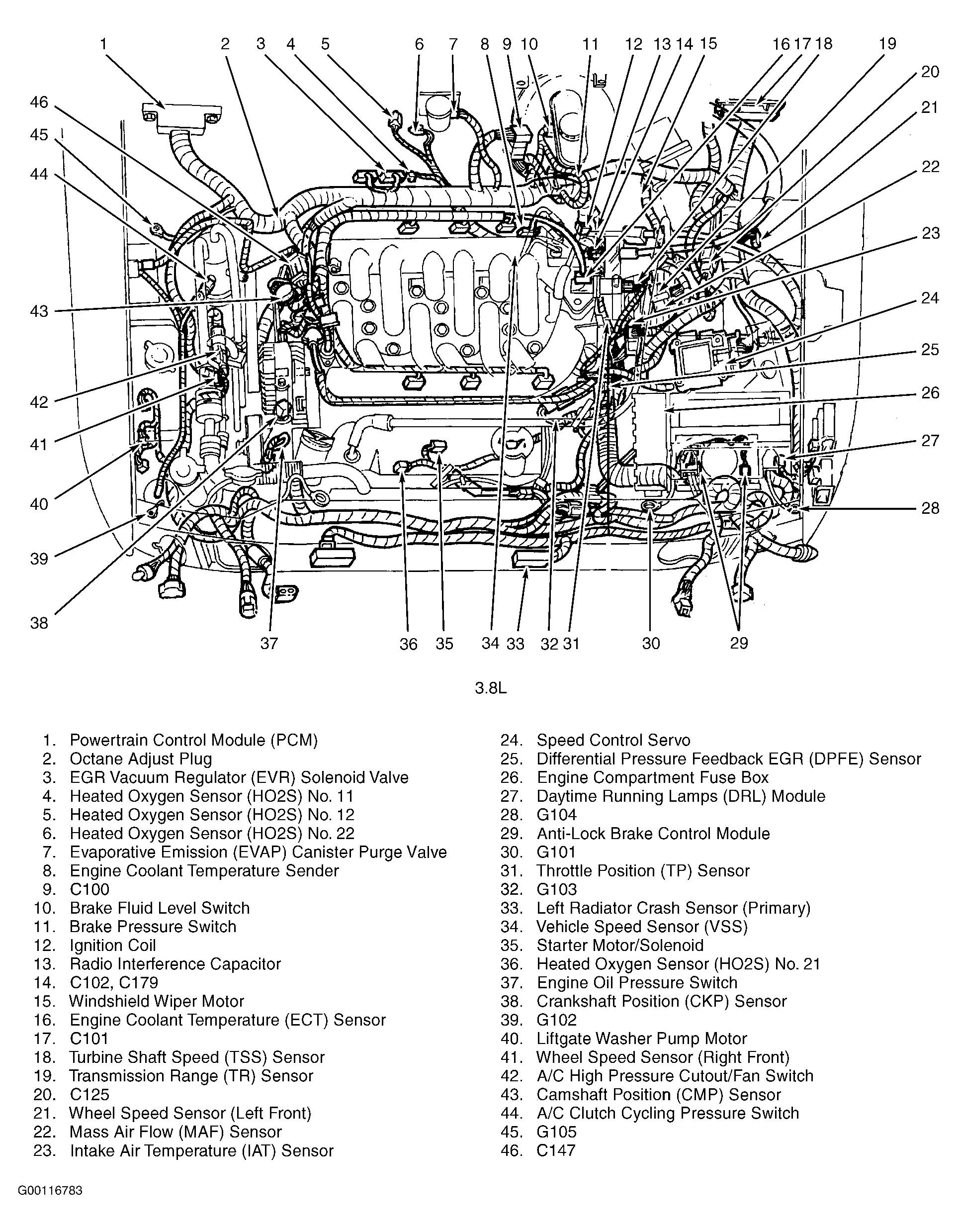 Daytime Running Lights (DRL) Module (3.8L)At left front of engine compartment.