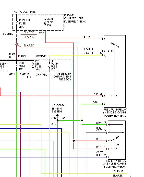 I have a 98 kia sportage with a 2.0 4x4. Recently parked it thinking the fuel pump was going out on it, replaced fuel pump and it wouldnt start. Found out that there wasnt any power going to the fuel pump or to the injectors. Have checked all the fuses they are all fine. I can get it to start only by taking the air intake off and spraying starter fluid in but the minute I quit it dies so I know its not an ignition problem. I ran the fuel pump direct just to see if it would come on and it did but of course still wont start. I have checked all the wires coming out of the ecu with a test light all of them are fine. I am loosing power somewhere between there and the injectors. Does anyone have any ideas? Please help