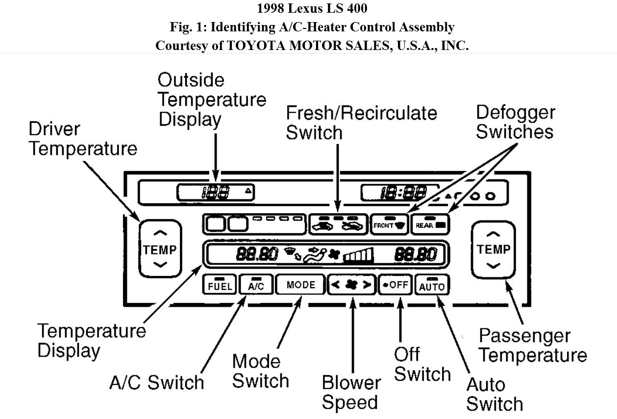1. Simultaneously press and hold AUTO and recirculated air buttons. See Fig. 1. Turn ignition on. All indicators will flash 4 times, at one-second intervals. A tone will sound when indicators flash. To cancel indicator check, press OFF button.