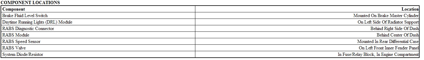 wiring harness. See WIRING DIAGRAMS. If resistance is less than 5 ohms, replace RABS