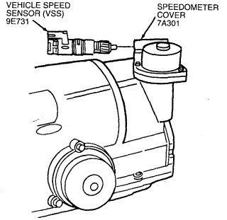 Ensure internal 0-ring is seated properly in VSS housing. Snap speedometer cable into VSS housing.