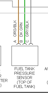 On top of fuel tank, in the diagram, you caN SEE wiring colors for the connector. Fuel tank pressure sensor.