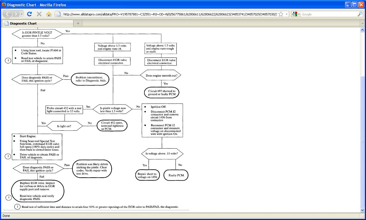 IMPORTANT: When the PCM recognizes that the parameters for setting P1404 have been set, the diagnostic software waits until the EGR cycles open 50% or greater four times and then retests. If after the three cycles the actual vs learned is not within the parameters, the DTC will be stored and the MIL (SERVICE ENGINE SOON) will be commanded On.