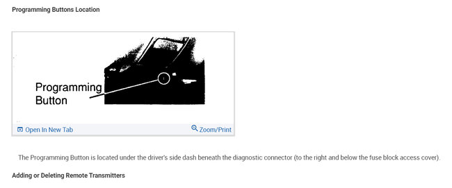 The Programming Button is located under the driver's side dash beneath the diagnostic connector (to the right and below the fuse block access cover).